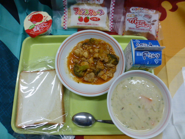 クリスマスをイメージしたメニューです。選択給食のデザートはどれもおいしそうで迷ってしまいますね。それぞれ、味や食感以外にもカロリー、脂質の量、栄養素など選ぶポイントはいろいろあります。みなさんが選んだ理由はなんでしたか?