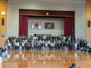 3月4日、体育館にて「お別れ集会」を行いました。これまで学校をしっかりと支えてきた6年生に感謝の気持ちを伝えるため、全校児童で温かな時間を過ごしました。