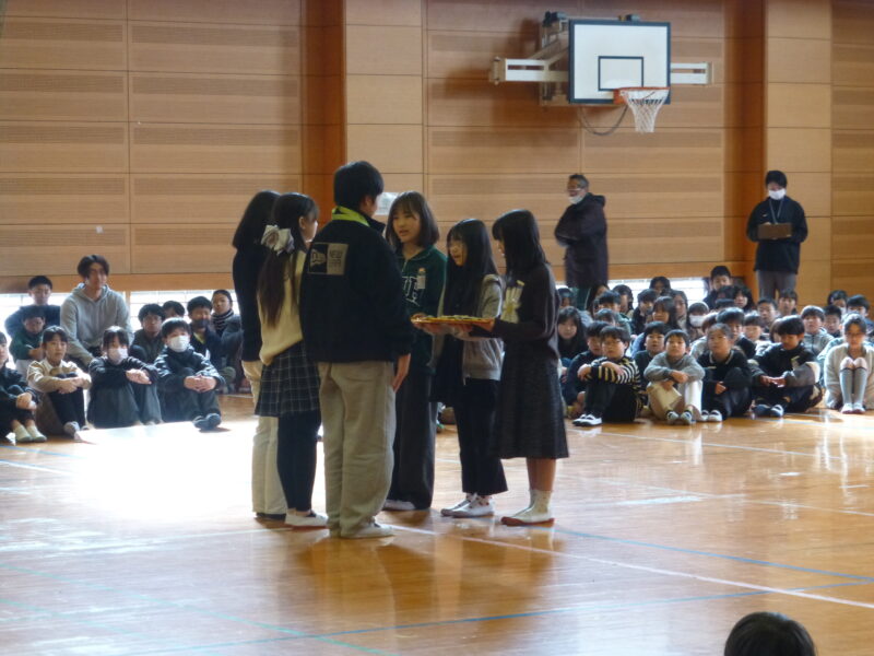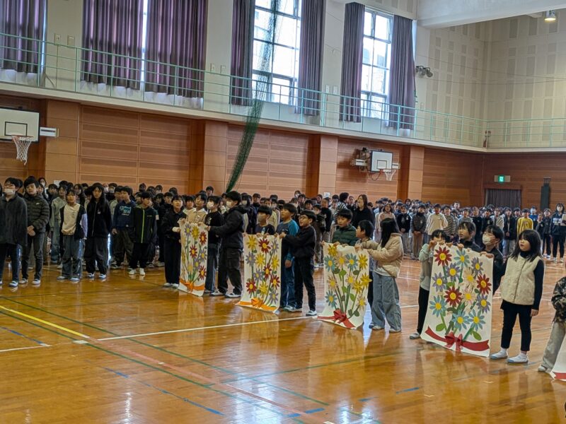 3月4日、体育館にて「お別れ集会」を行いました。これまで学校をしっかりと支えてきた6年生に感謝の気持ちを伝えるため、全校児童で温かな時間を過ごしました。