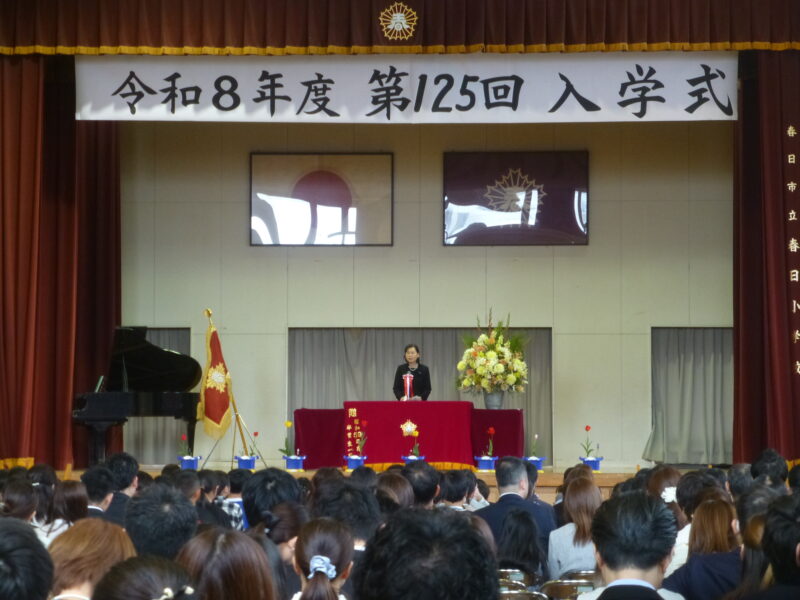 2026年4月10日 / 最終更新日時 : 2026年4月10日 春日小学校 学校からのトピックス 令和8年度 第125回 入学式 本日、令和8年度の新1年生入学式が行われました。開式前には雨が降っていましたが、式が終わるころには雨も上がり、まるで子どもたちの門出を祝福しているかのようでした。少し緊張しながらも元気に登校した新入生の姿に、教職員一同も胸が温かくなりました。晴れ間のように明るい学校生活が始まることを願い、月曜日から皆さんと学べる日を心待ちにしています。