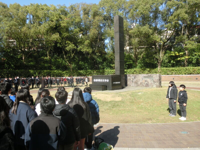 2025年12月12日 / 最終更新日時 : 2025年12月12日 春日小学校 学校からのトピックス 修学旅行(6年生) 12月10日・11日に、長崎への修学旅行に行きました。平和公園では、原爆の悲惨さや平和の尊さについて想いを深めるために平和集会を行いました。一人ひとりが平和への願いを胸に刻む時間となりました。 また、フィールドワークでは、原爆の被害について調べました。命の大切さや未来を担う自分達が果たすべき役割について考える貴重な学びとなりました。