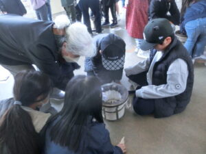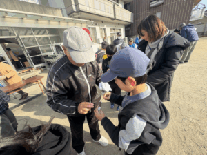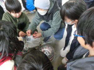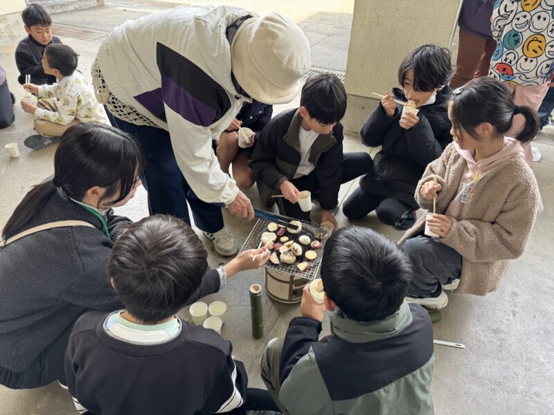 2025年12月11日 / 最終更新日時 : 2025年12月11日 春日小学校 学校からのトピックス 総合的な学習の時間 七輪体験(3年生) 12月10日、総合的な学習の時間に、小倉の長寿会や昇町の令和みずき会の皆様にご協力いただき七輪体験をしました。炭に火をつけるところから始まり、おもちをじっくり焼いて味わいました。子どもたちは「炭火で焼くとおいしい!」「火をおこすのって大変なんだね。」と、普段の生活ではなかなかできない体験に目を輝かせていました。地域の方からは「昔は七輪を使って食べ物を焼いたんだよ。」と昔の暮らしのお話も聞かせていただき、子どもたちは興味津々。食べ物のありがたさや、火を扱うときの注意も学ぶことができました。ご協力いただいた小倉の長寿会や昇町の令和みずき会の皆様、ありがとうございました。